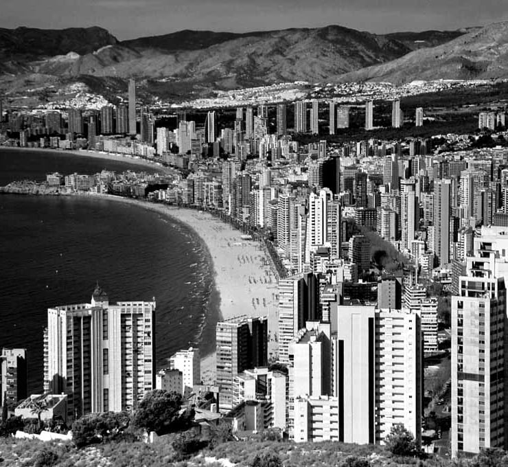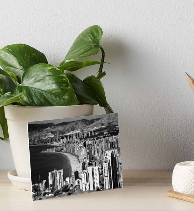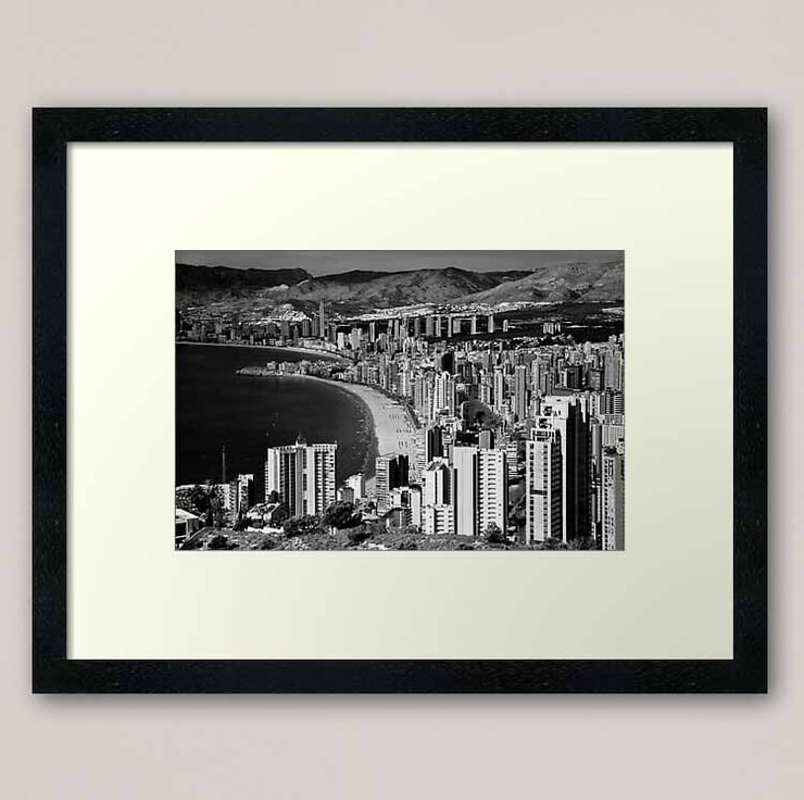 Benidorm skyline cityscape on the Mediterranean coast in Costa Blanca Alicante Province Spain viewed from La Cruz a photographic print photography by Andy Evans Photos