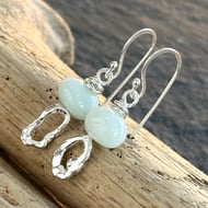 These are hand forged silver earrings with a hammered texture and a little curve so that they sit nicely just below the ear. They have been heavily hammered to form a sort of figure of 8 shape.