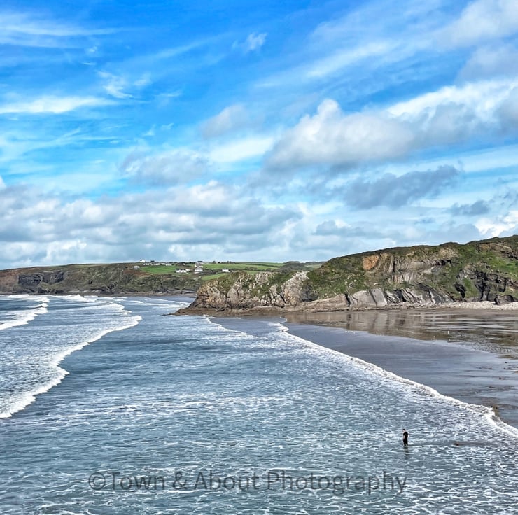 The Welsh coast is gorgeous and I was blown away by Broadhaven. What I love most about this image is the tiny figure standing in the waves as it adds a real sense of proportion and you can see just how big the cliffs are - it is spectacular.