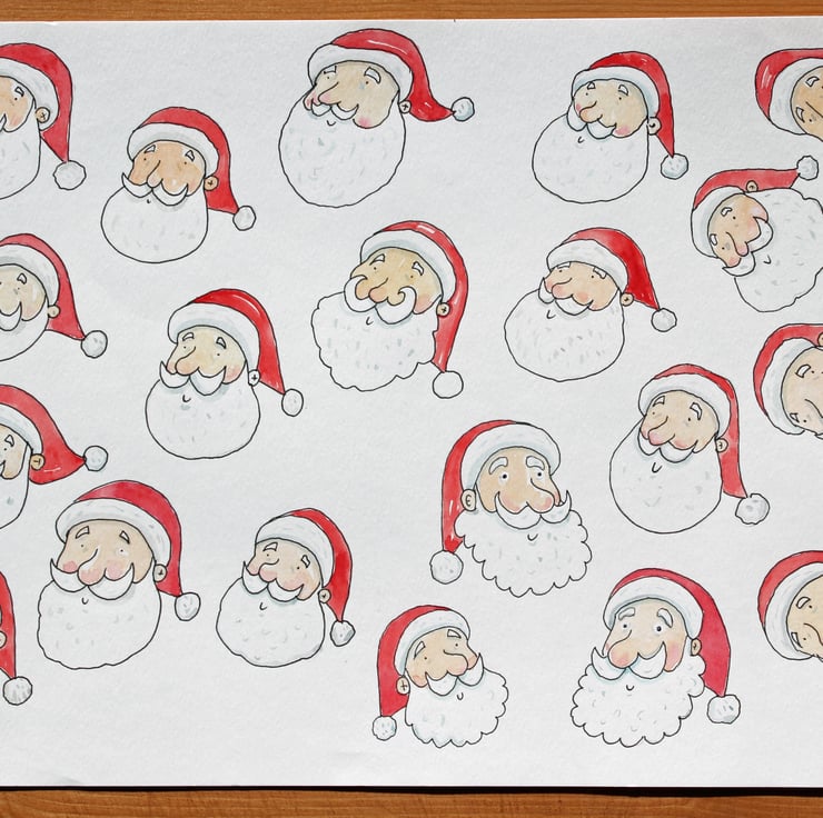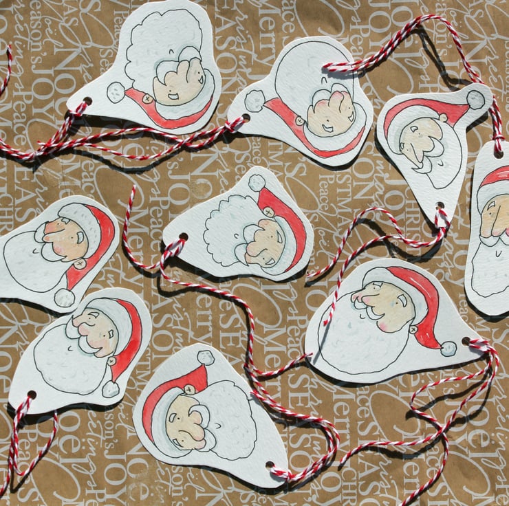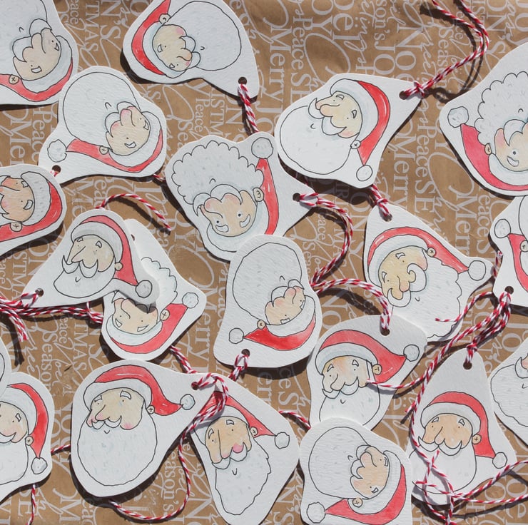 Each Santa is cut out individually by hand and then I add a hole and bit of string.