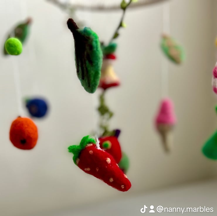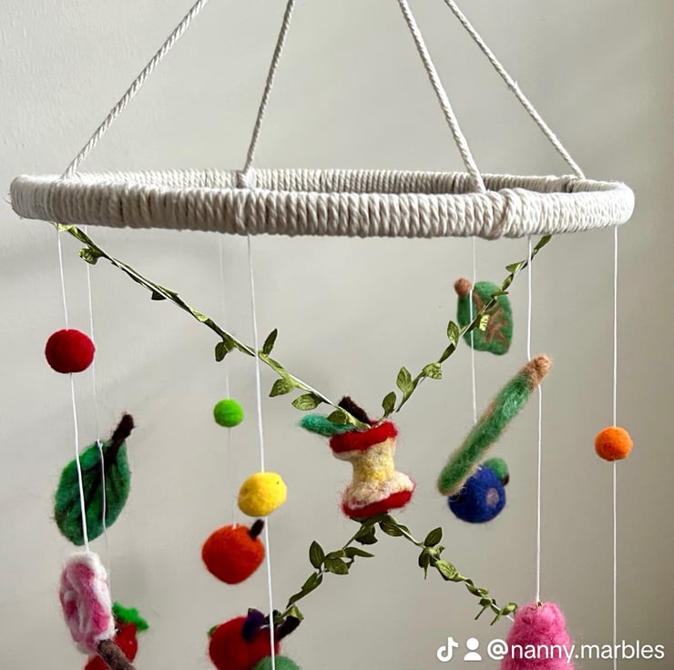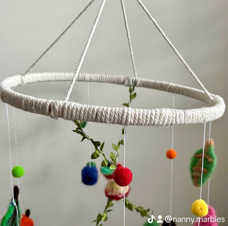 I made my first needle felted mobile for my first grandson. Seeing how much he loves his mobile and my love of needle felting I decided that I would spread my new found passion with others.