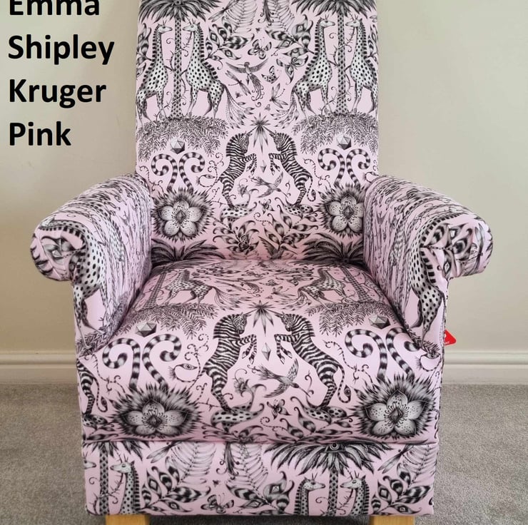 Emma Shipley Kruger Pink Fabric Adult Chair Armchair Zebra Animals Giraffe Small
