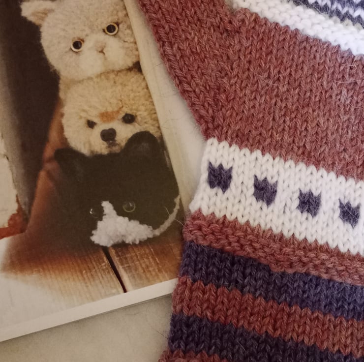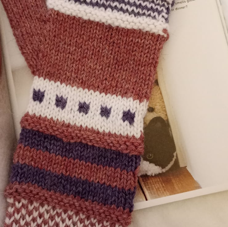 These wristwarmers are hand-knitted in a pure wool and alpaca blend yarn, from a pattern I wrote myself.