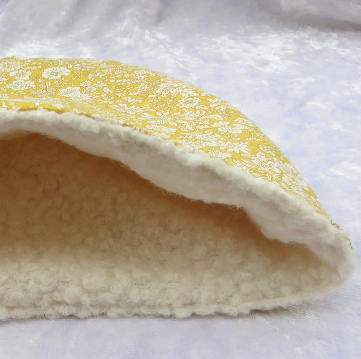 This cosy is lined with a textured boucle fabric.