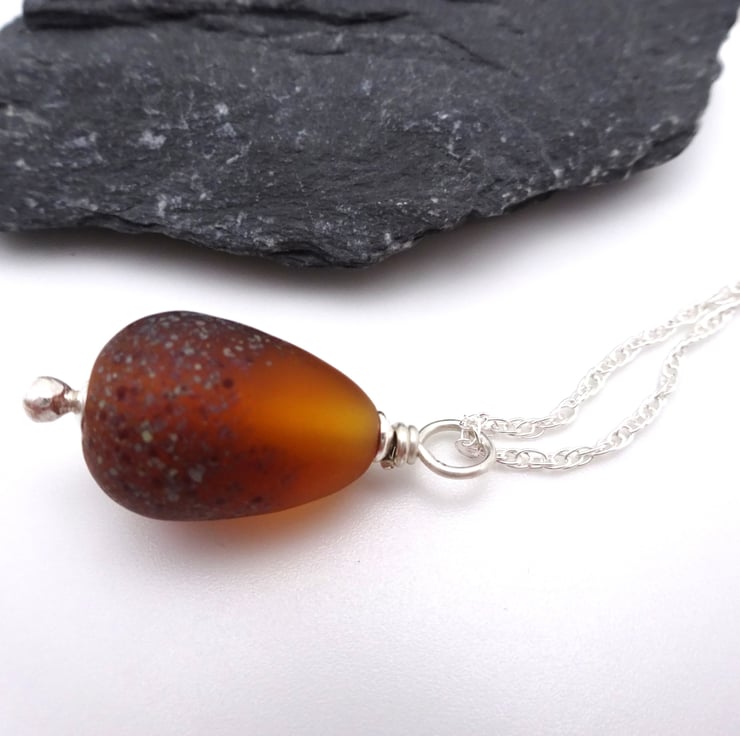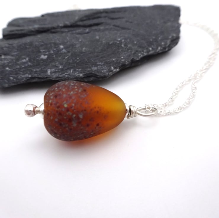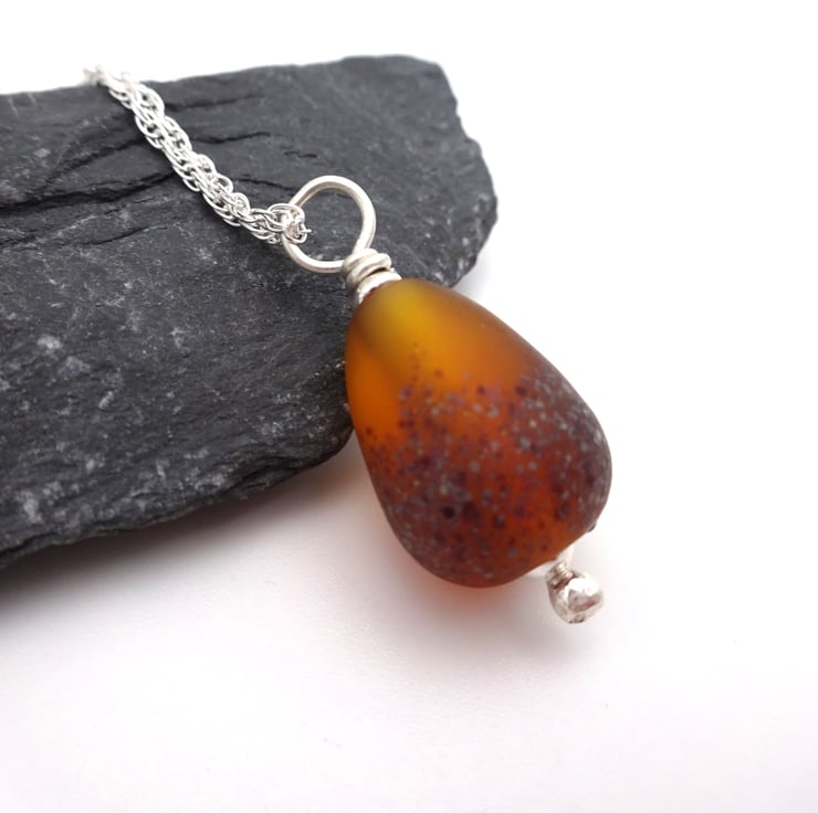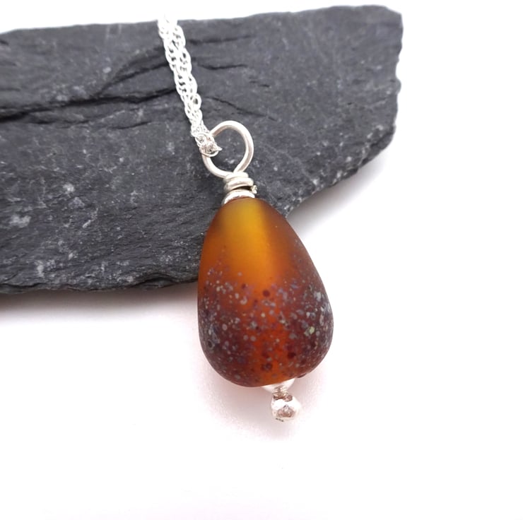 The pendant has been handmade by me using amber glass.