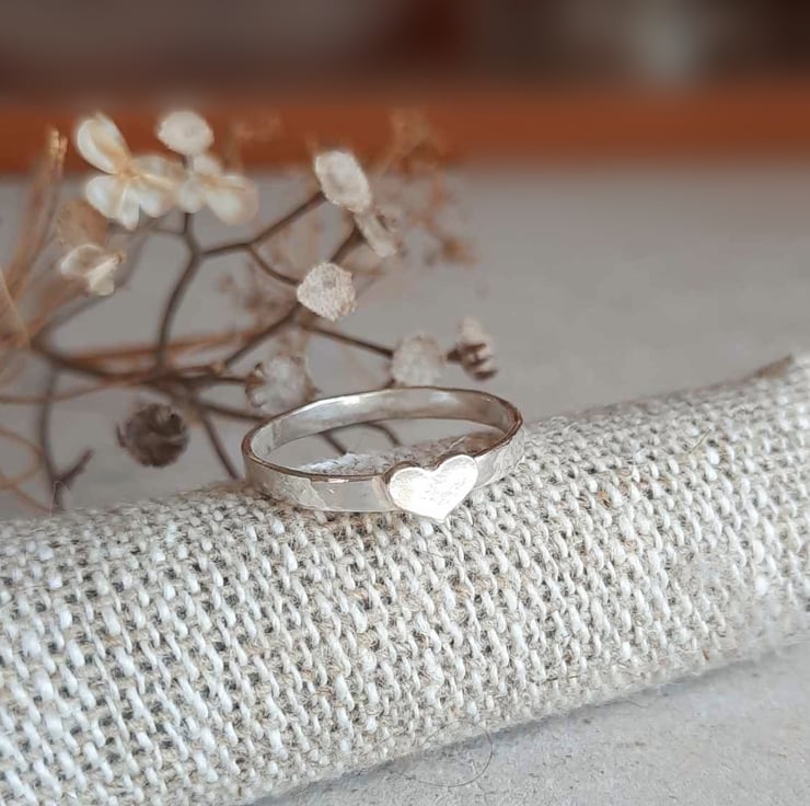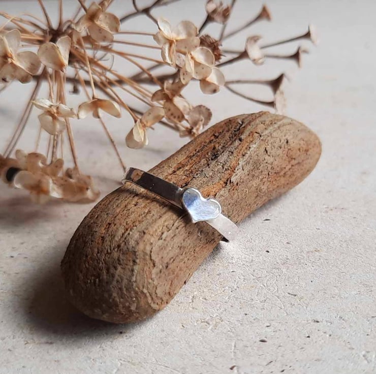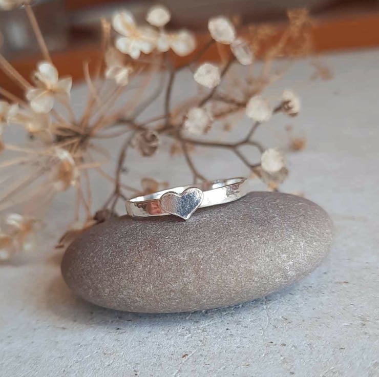 This cute love heart band ring is hand crafted from 100% recycled 925 sterling silver and 999 fine silver. You can wear it as either a finger ring or a thumb ring.