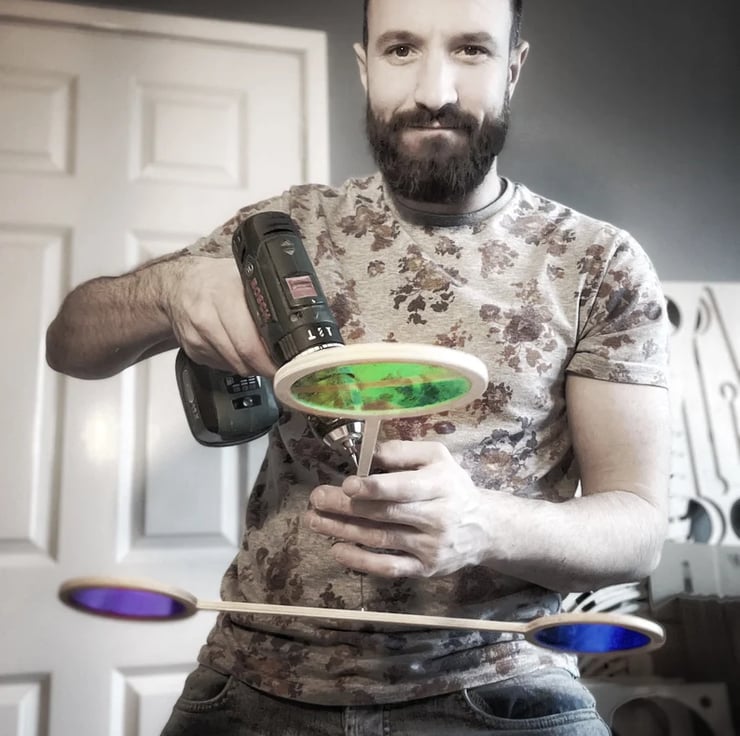 Years later, while working with various materials in my woodworking studio, I was inspired to merge my love for woodworking with modern materials like colourful acrylic. This combination of natural wood and iridescent acrylic perfectly captured the mid-century modern aesthetic I admired. The contrast between the warm birch plywood and the rainbow acrylic seemed to bring the piece to life.