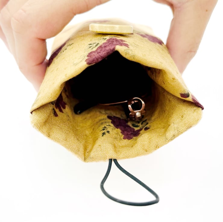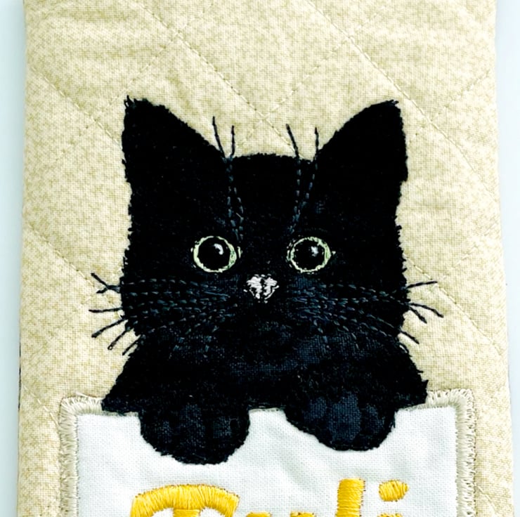 Machine embroidered onto a quality 100% Cotton fabric. Fully lined and backed with a quality 100% Cotton Fabric and padded with a 100% cotton batting then finished with an elastic loop and wooden button to fasten closed