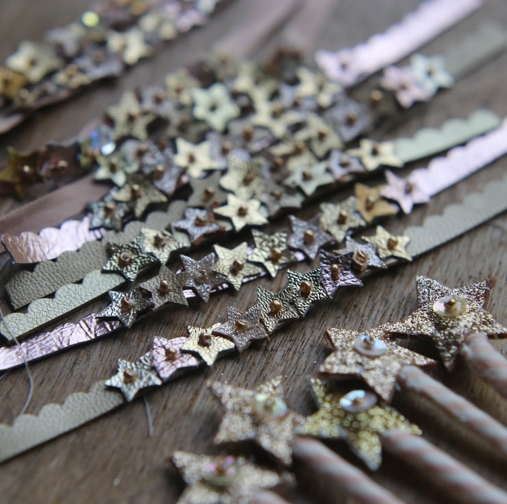 Each star is attached with a tiny gold bead, as is her matching crown.