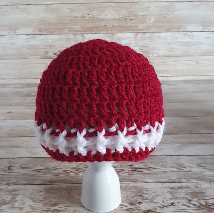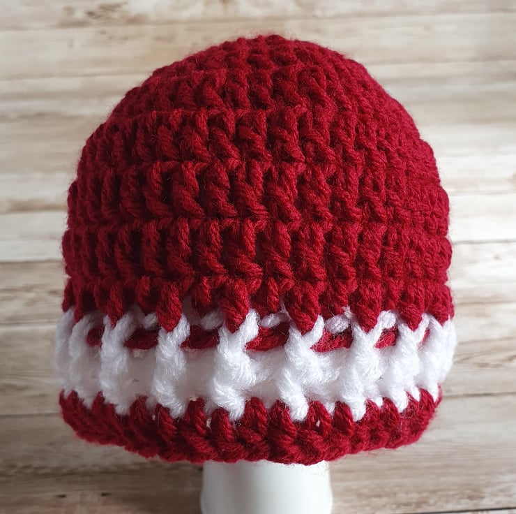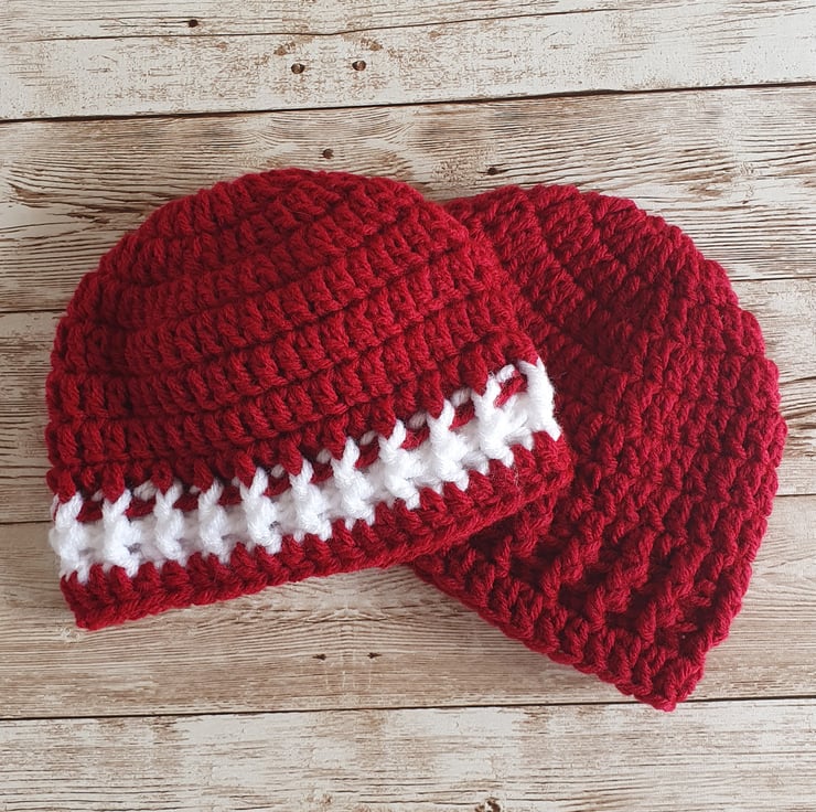 Perfect for preemies or babies aged 0-3 months, these hats are handcrafted with love and care. Made with soft yarn, these hats are gentle on your baby's delicate skin.The cute design and vibrant color make these hats a perfect addition to any baby's wardrobe. Whether you're looking for a gift for a baby shower or wanting to stock up on essentials for your own little one, these red and whtie crochet knit baby hats are a must-have accessory.