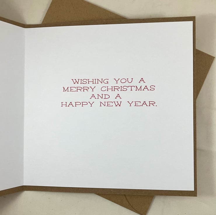The card measures approximately 13.5 cm (5.25 inches) square and comes with a matching kraft envelope, in a sealed cellophane wrapper.