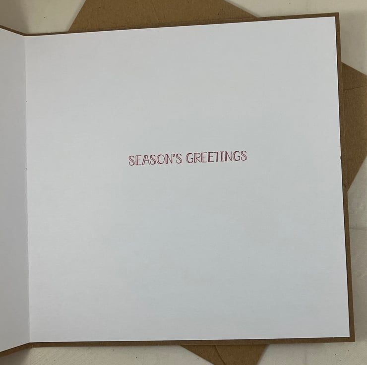 The card measures approximately 13.5 cm (5.25 inches) square and comes with a matching kraft envelope, in a sealed cellophane wrapper.
