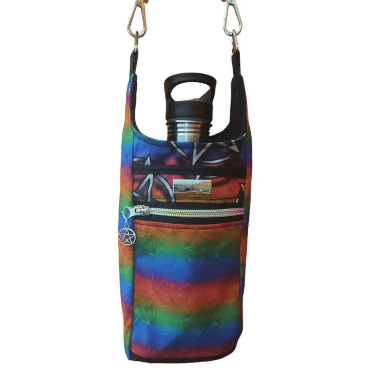 The main opening will accommodate a large water bottle, reusable cup or a can of your choosing, it is even large enough to hold a full size bottle of wine if you want.