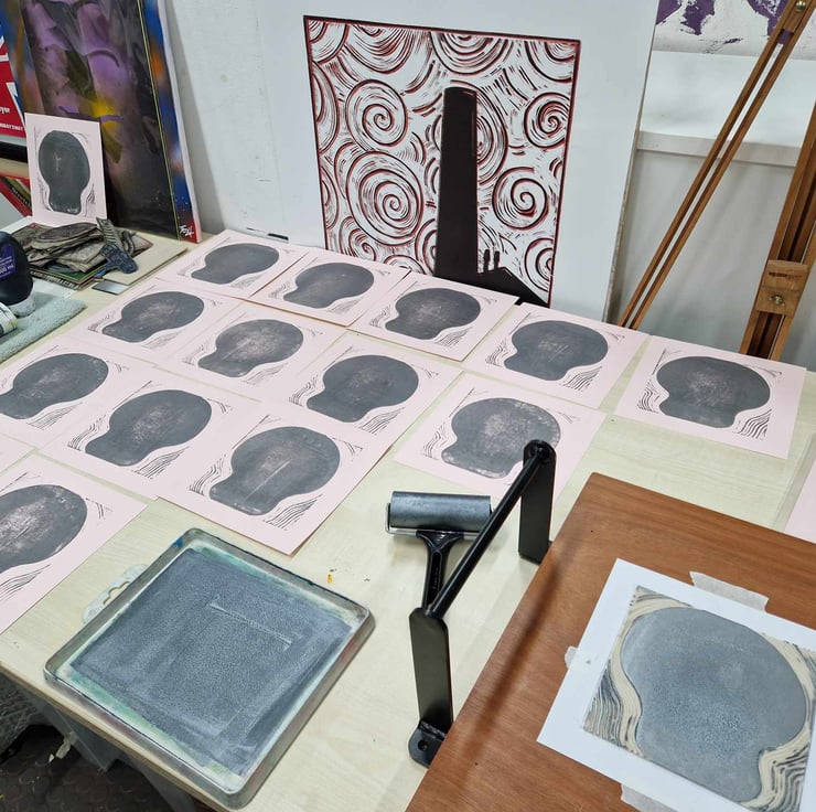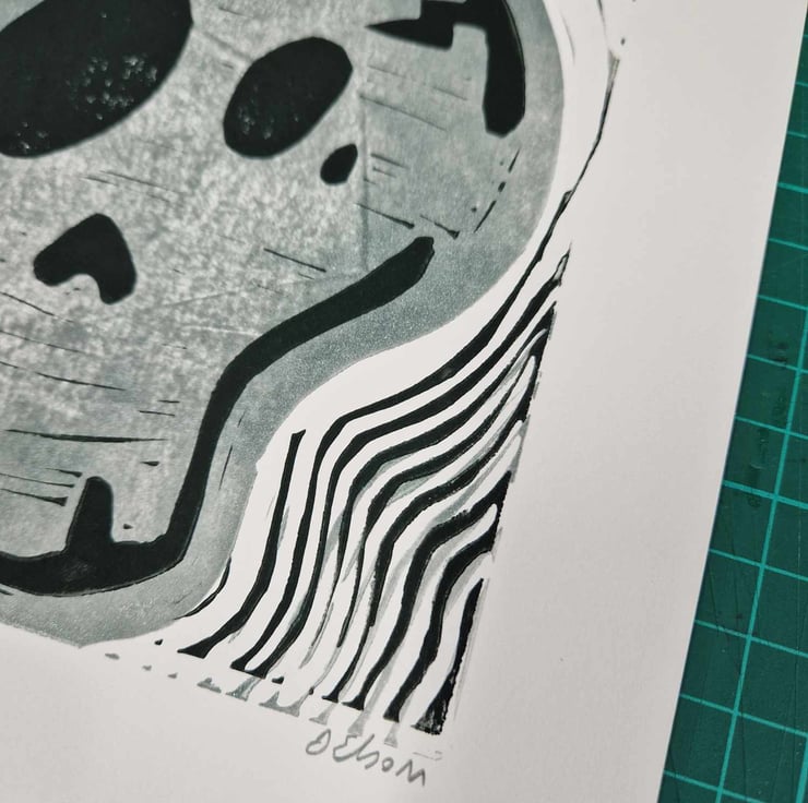 I thought it would make a nice lino print so I used two different plates to create the design.