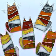 These have been made using of amber stained glass. Each piece of glass has been hand cut, ground, washed, foiled and soldered together before being washed again.