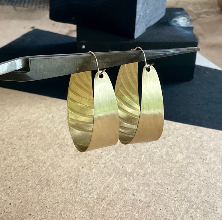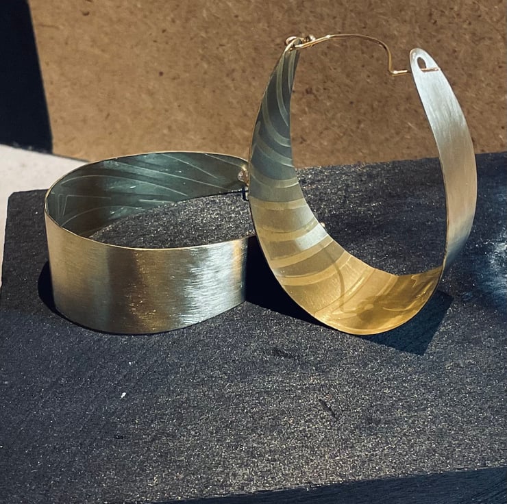 I am drawn to plants, especially the intricate beauty of foliage. The delicate lines of leaves, their natural textures, and the way they interact with light inspire much of my creative process. In designing these earrings, I wanted to merge my love for hoops with the organic beauty of plant life. On the outside, a brushed finish adds depth, providing contrast to the foliage pattern incorporated on the inside.