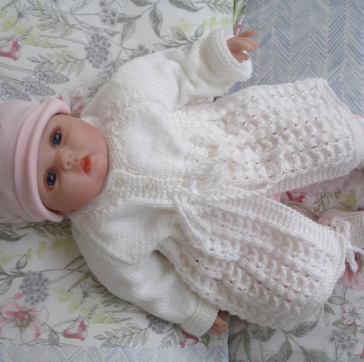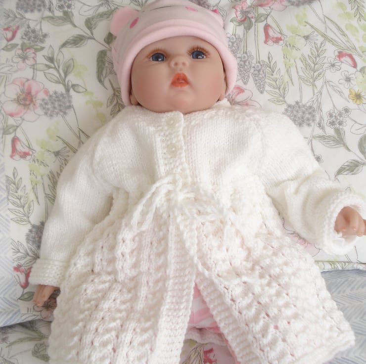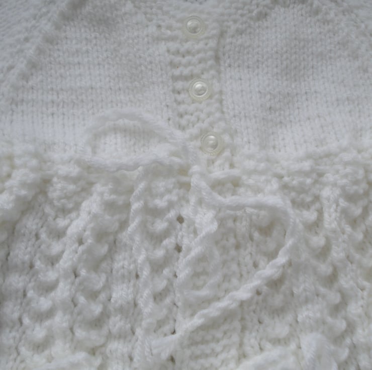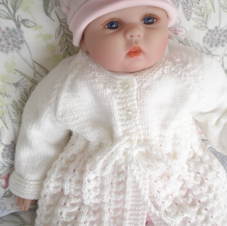 Pretty White Hand Knitted Cardigan And Bootees For Baby (J78)