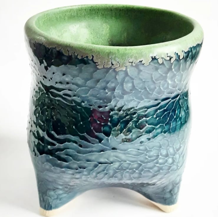 This is a handmade wheel thrown Ceramic Plant Pot Holder