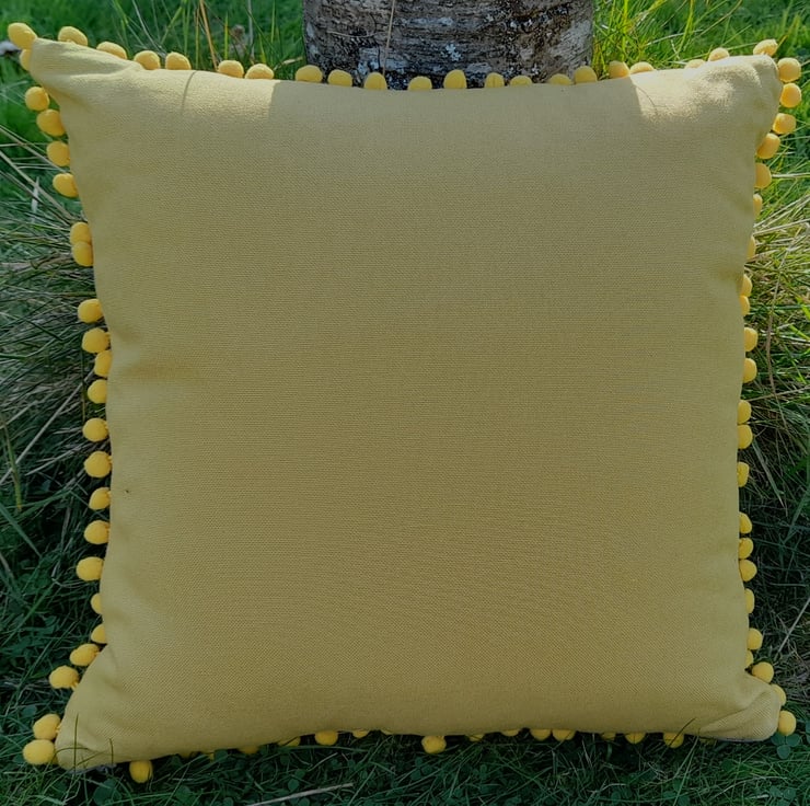 The cushion is embellished with a fun pom-pom trim and has a conceal zip. It comes complete with a cushion inner pad and measures 38cm x 38 cm.