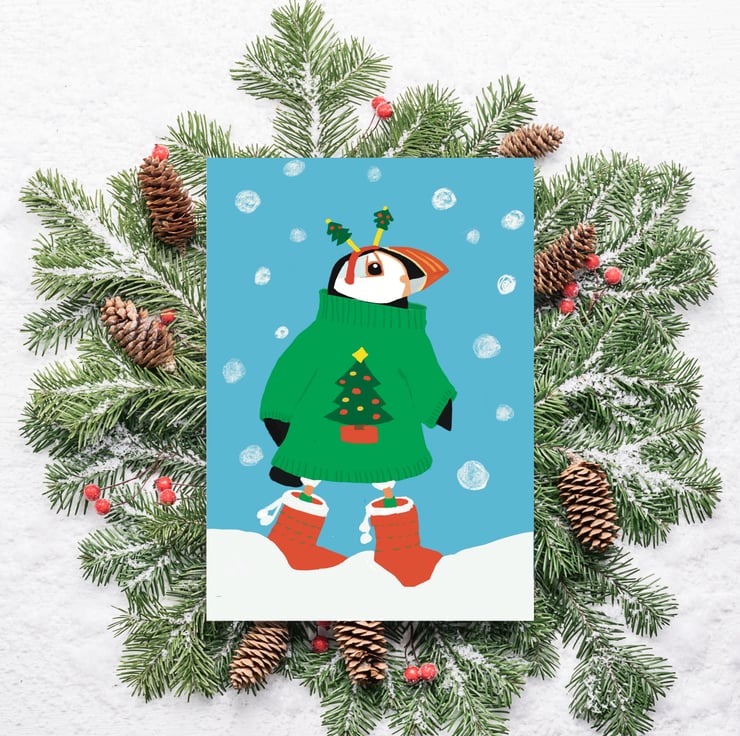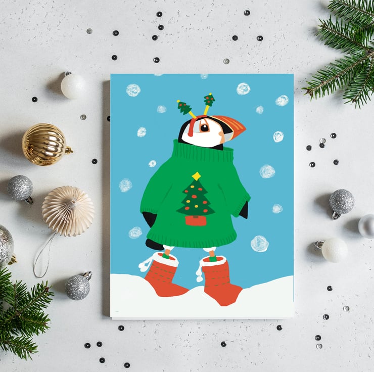 For the last two years I have created Puffin Christmas cards and here is 2024s with very cute jumpers