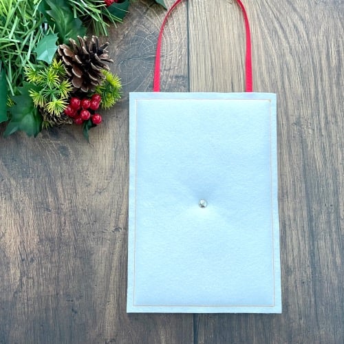 Handcrafted from a Wool Blend Felt with a layer of polyester padding and a Satin or Grosgrain ribbon for hanging.