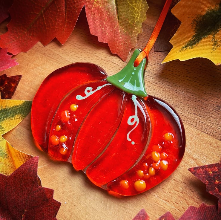 Made from transparent orange glass, it has a textured feel to it to replicate the lumps and bumps of a pumpkin!