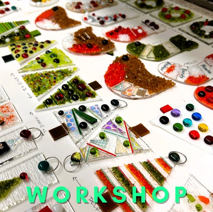 In this workshop you will create several Christmas decorations! You will learn how to build up your decorations by using glass pieces, Dichroic glass, rods, paint and frits (crushed glass). You will also get the opportunity to learn how to cut glass too if you wish!
