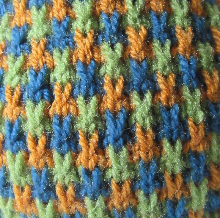 A hand knitted tweed stitch tea pot cosie using rich Christmas bauble colours of slate blue, gold and christmas tree green with an oversized pompom on top. Starting at the hem I have knitted the rib in slate blue. Then using three different coloured yarns; christmas tree green, slate blue and gold, I have knitted a wonderful tweed stitch tea cosie body. Adding an oversized pompom, nestled on the top, in the same three colours and glitter gold lurex yarn, gives extra sparkle to this classic Christmas tea cosy. This stitch ensures a good fit around the pot, yet has enough ease for a swift removal when a 'top - up' is required. The tea pot handle peeps through the side opening so it dosnt get too hot to handle. A perfect house warming gift, or for yourself...... just because it looks pretty on the kitchen work top at Christmas