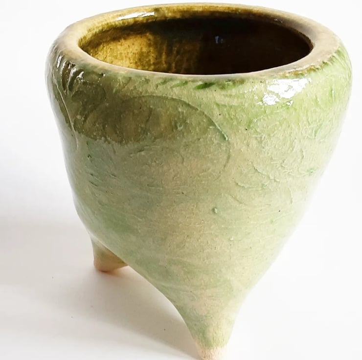 This is a handmade wheel thrown Ceramic Plant Pot Holder