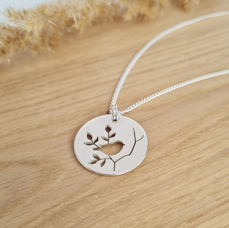Using traditional silversmithing techniques of hand piercing this stunning pendant if made from solid sterling silver, featuring a beautiful Robin silhouette perched gracefully on a branch.