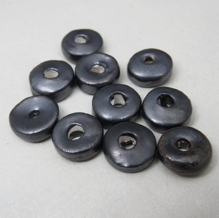 They are approx 1.3 cms (0.5") diameter, with a 3mm (0.1") hole but as they are handmade, they are not identical and not perfectly round.