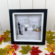 Halloween Graveyard watercolour and pebble picture.