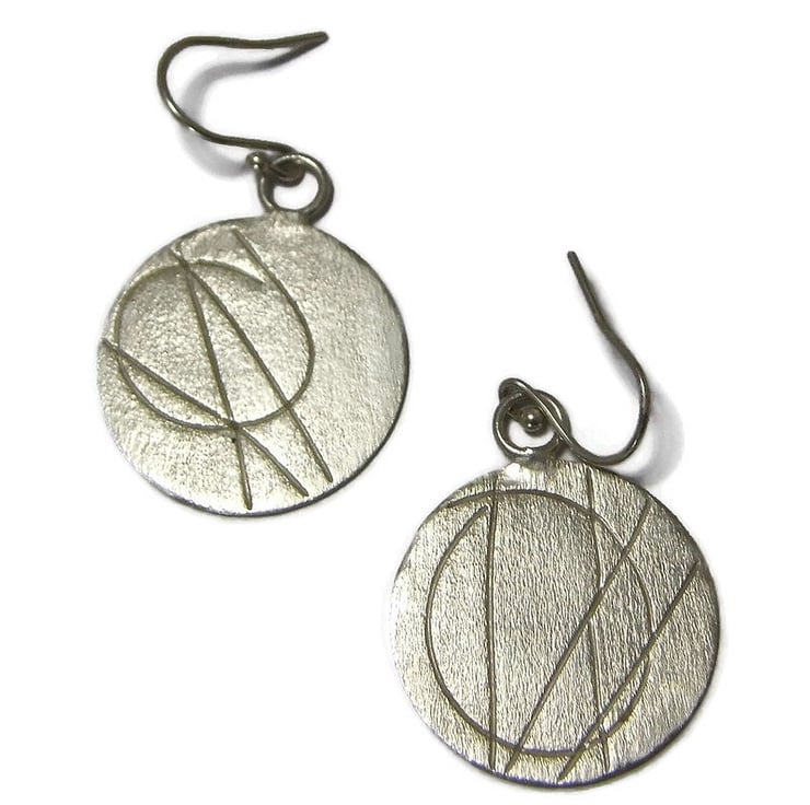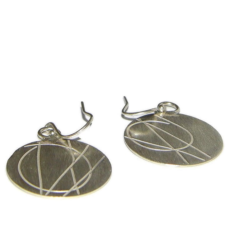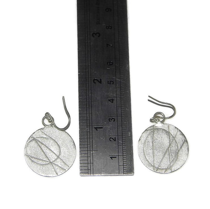 The discs are cut from 0.7mm sterling silver and measure 2.5cm in diameter but the total drop is 3.1cm including the jump ring