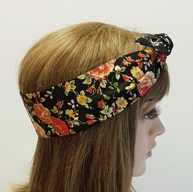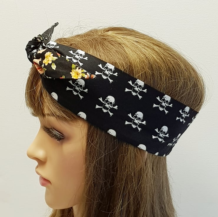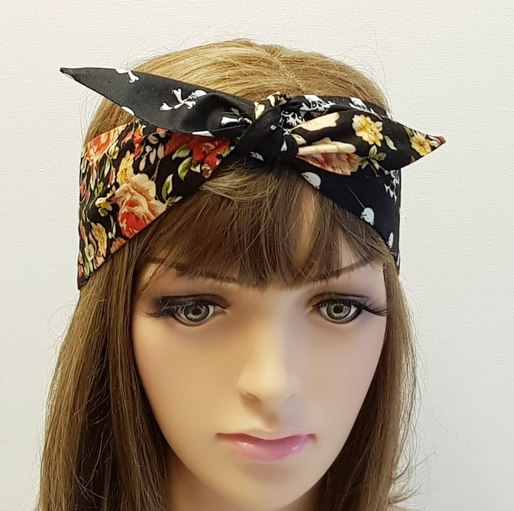 This rockabilly headband is made from printed 100% cotton fabric. The headband is NOT WIRED, NOT STRETCHY, UNTIED.