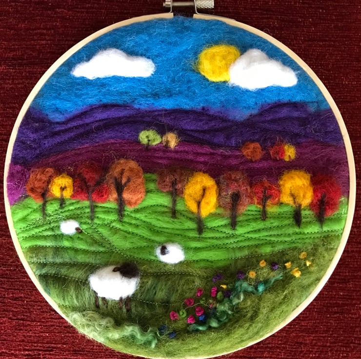 Needle felted landscape picture