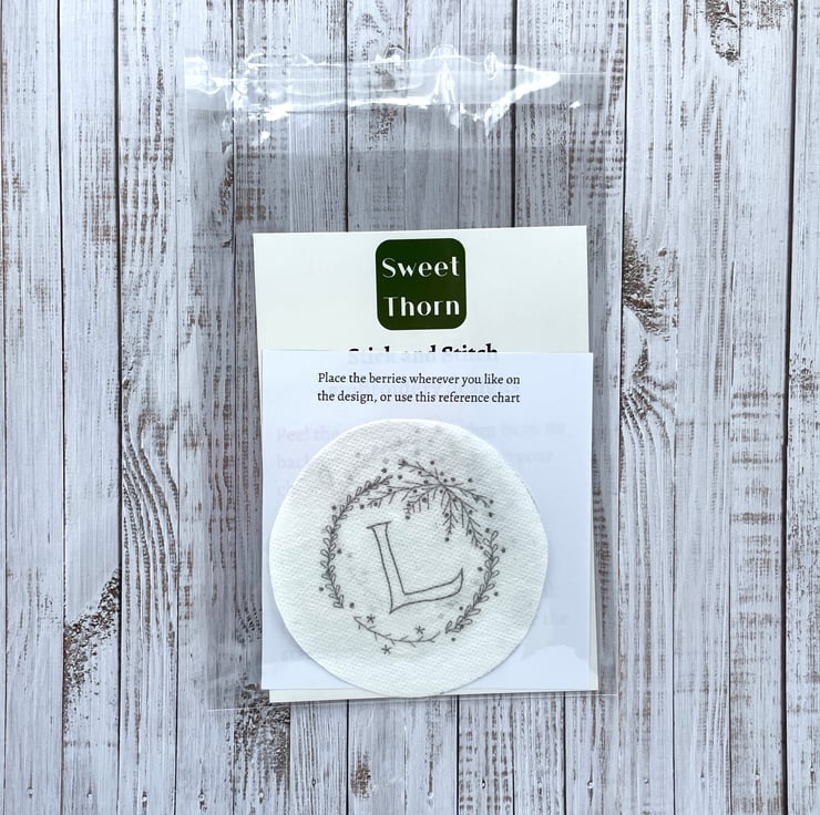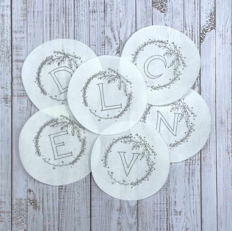 A pretty Christmas embroidery wreath sticker which can be personalised with the letter of your choice.