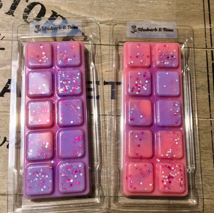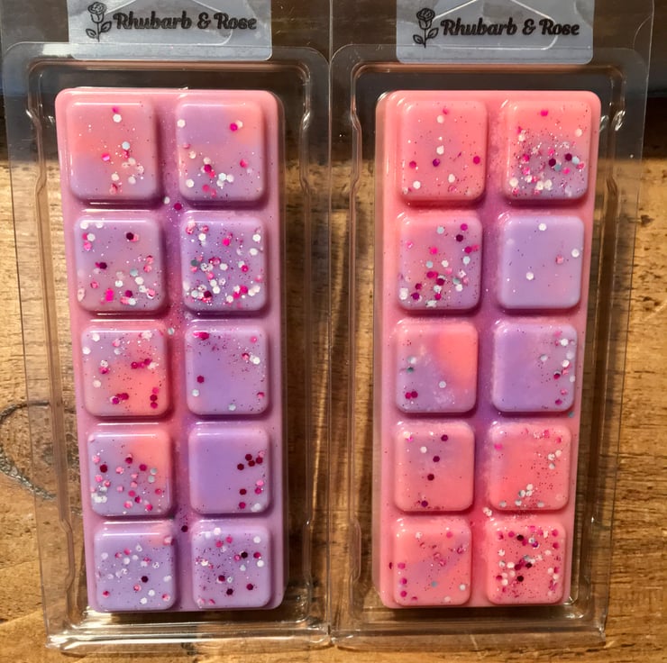 Rhubarb & Rose Scented 10 cell clamshell soy wax melt bar