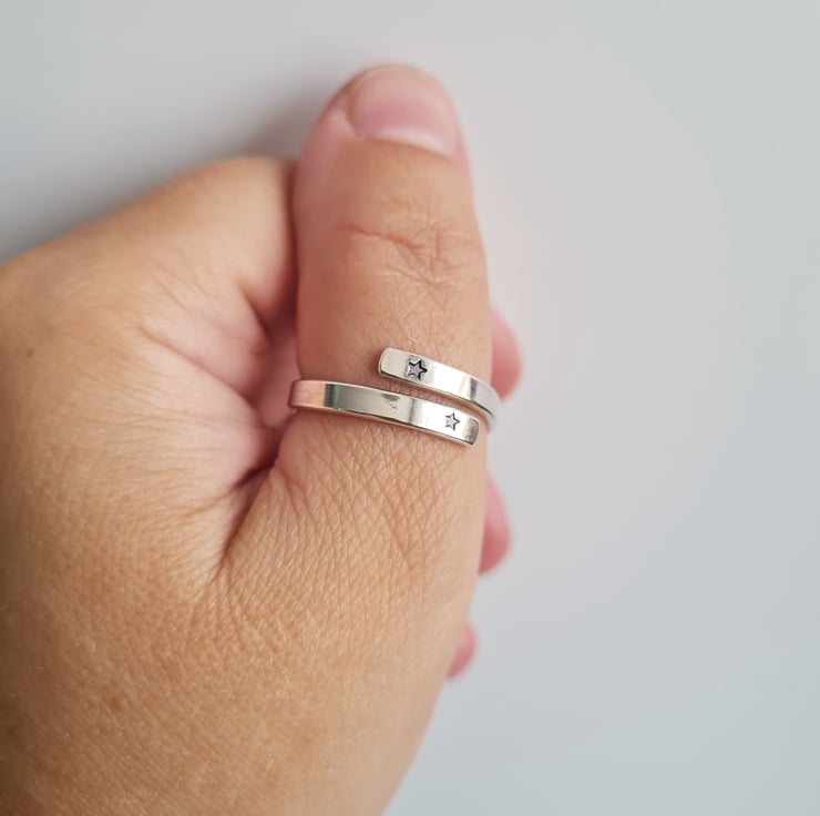 So versatile and easy to wear, you can even resize yourself at home so you can wear on a different finger a different day. To do this slowly and gently pull apart or make larger or squeeze to make smaller.