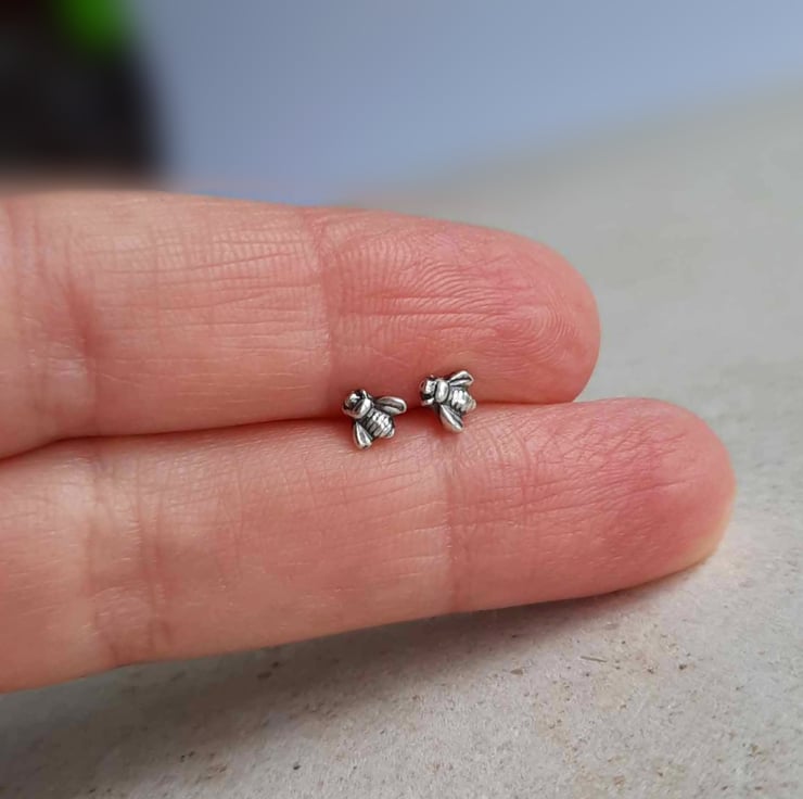 These teeny tiny silver bumble bee stud earrings are perfect for everyday wear!