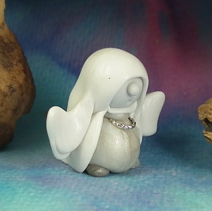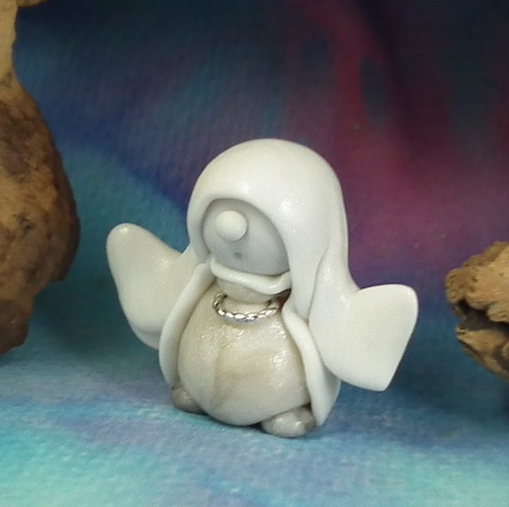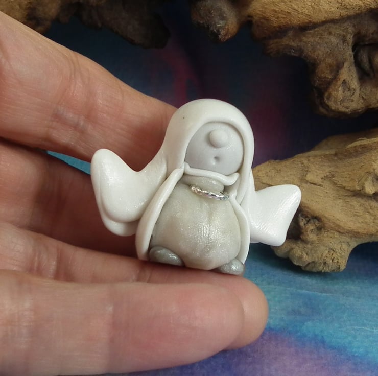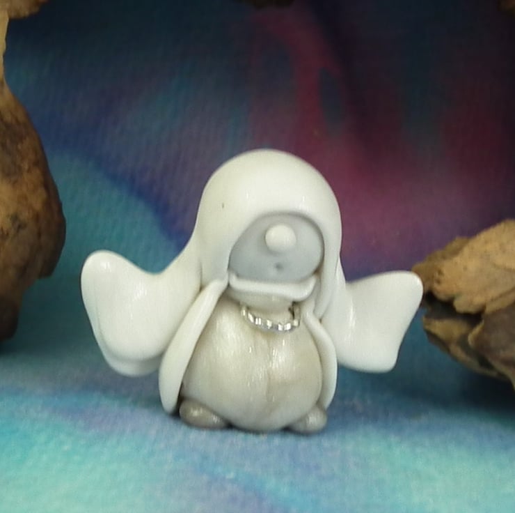 This is a 'one of a kind' creation having been entirely handmade without the use of moulds here at my studio on the Sussex Coast. Modelled with polymers, painted with heat set paints before sealing with lacquer. Ghost Gnome is just one and a half inches tall.