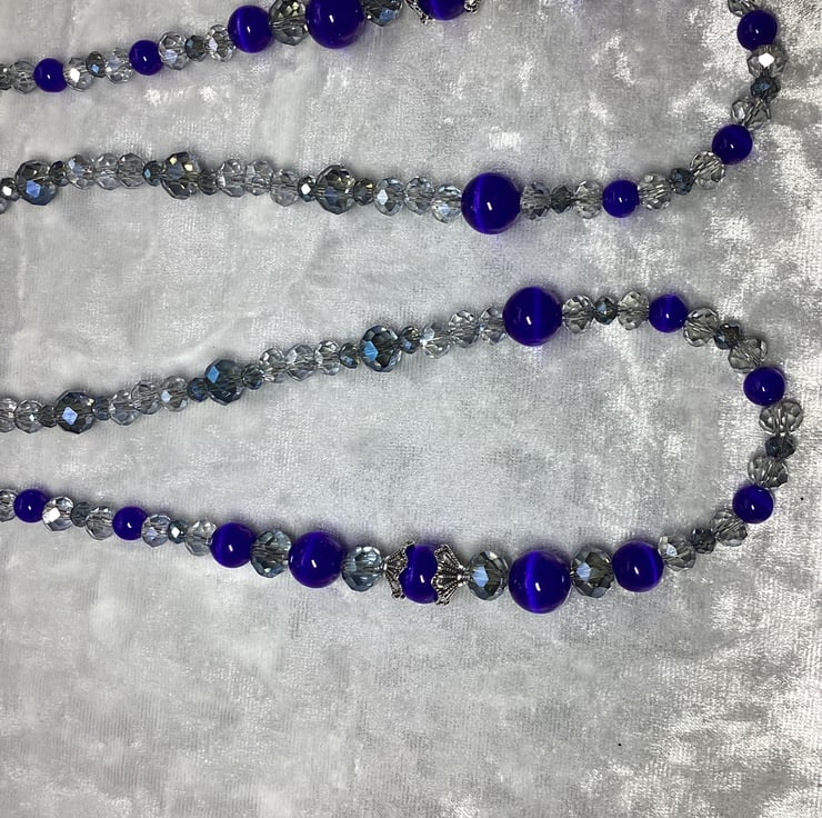 I’ve used Natural Moon Stone Beads in Blue Cat Eye Beads , Glass Czech Beads and 20 mm Rubber Connectors .