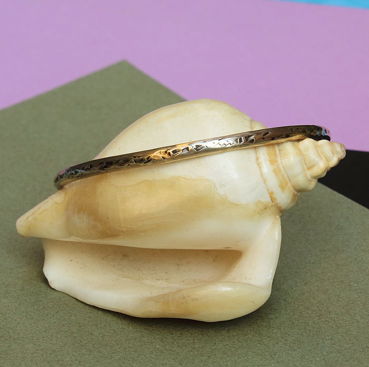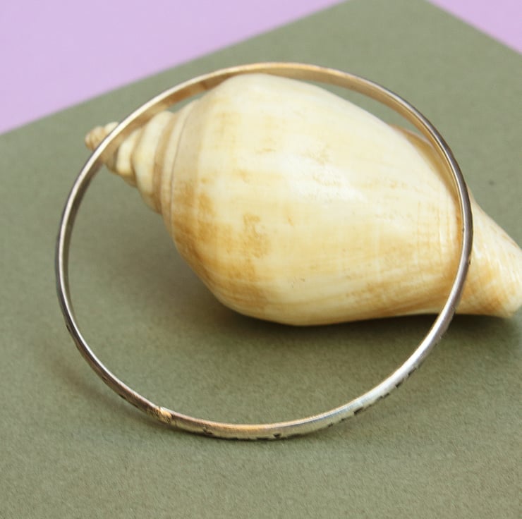 It is extra small in size, measuring 57mm across and made of finest Sterling Silver (925). The silver is a D shape, that is flat on the inside and curved on the outer. It measures 3mm wide by 1.5mm thick.