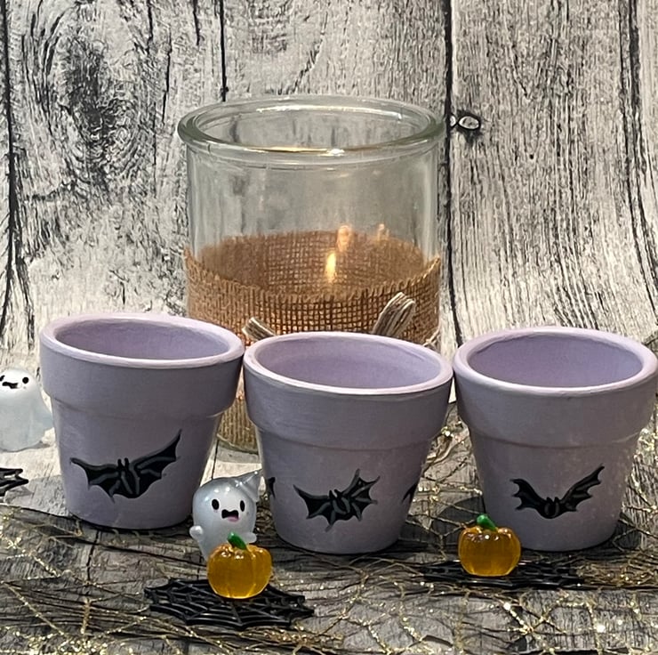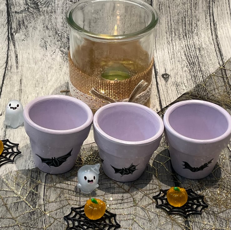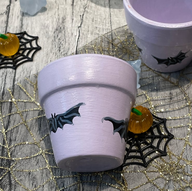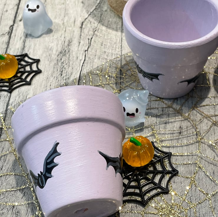 These cute little terracotta pots are hand painted with acrylic and finished with toy proof sealer. They are the perfect size for a small cactus or succulent. Although they have been waterproofed, I recommend indoor use.