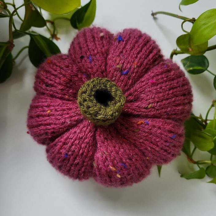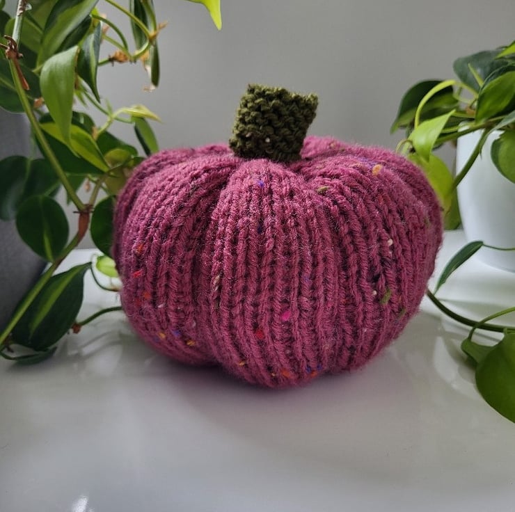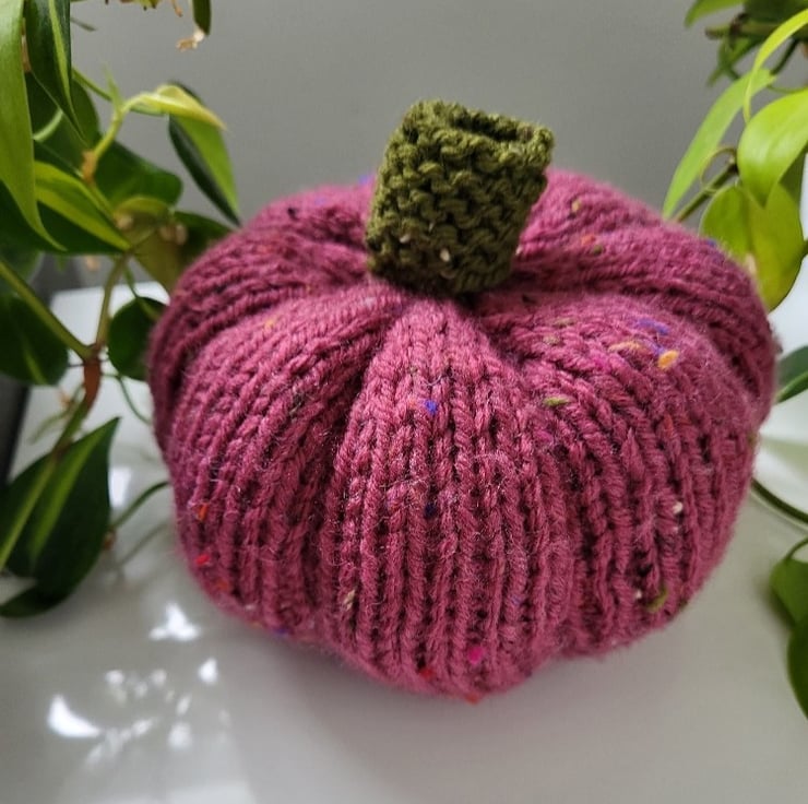 This gorgeous hand knitted plum "rosewood" coloured pumpkin is the perfect addition to your home, whether for Halloween, a gift or just for fun!