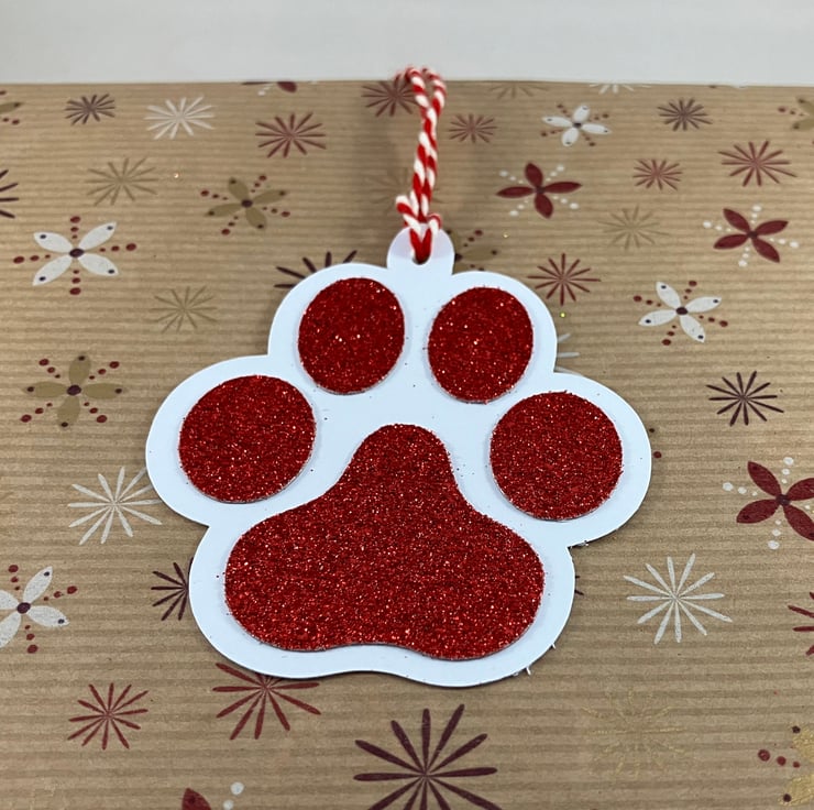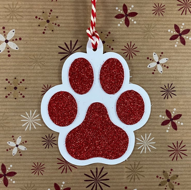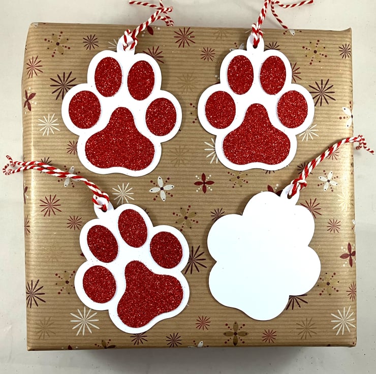 Pack of 4 paw print shaped gift tags, ideal for adding to your furry friend's Christmas present, or for the animal person in your life.