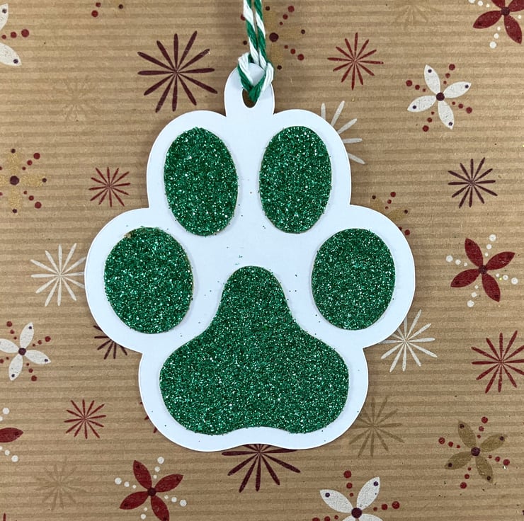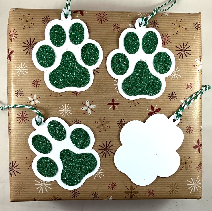 Pack of 4 paw print shaped gift tags, ideal for adding to your furry friend's Christmas present, or for the animal person in your life.