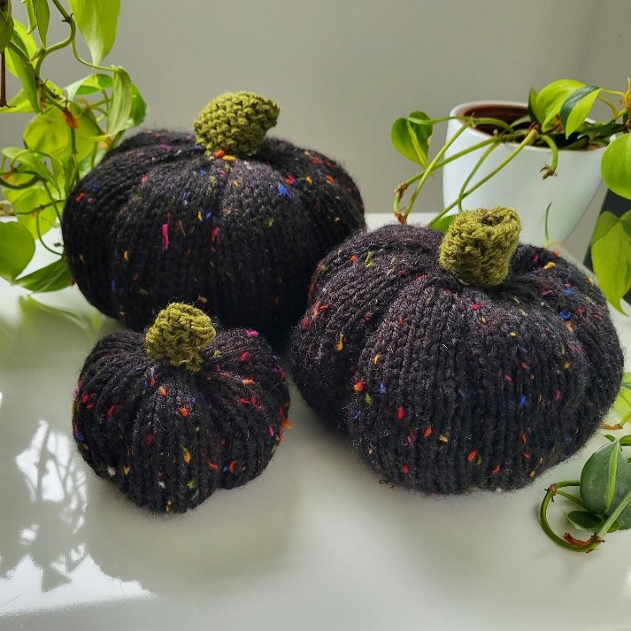 This gorgeous hand knitted black "charcoal" coloured pumpkin is the perfect addition to your home, whether for Halloween, a gift or just for fun!