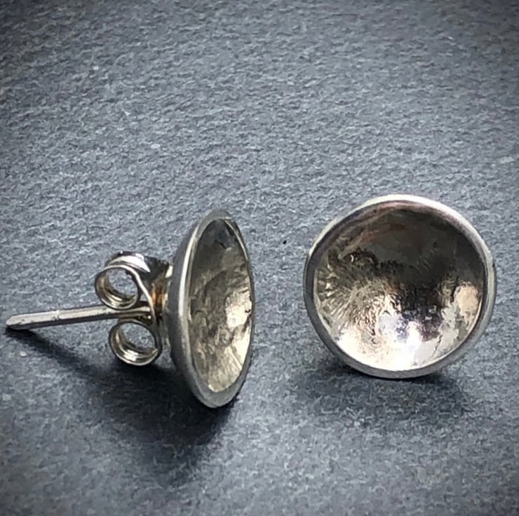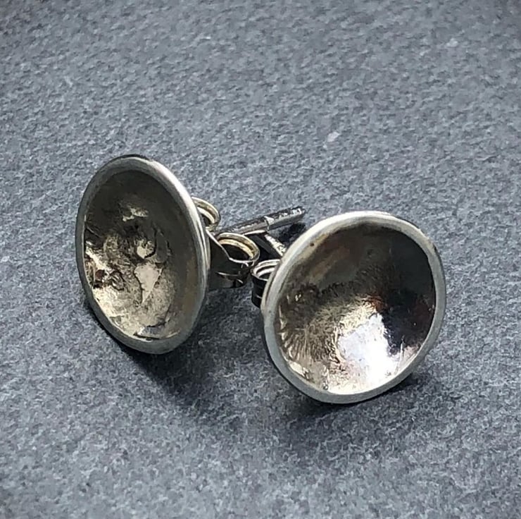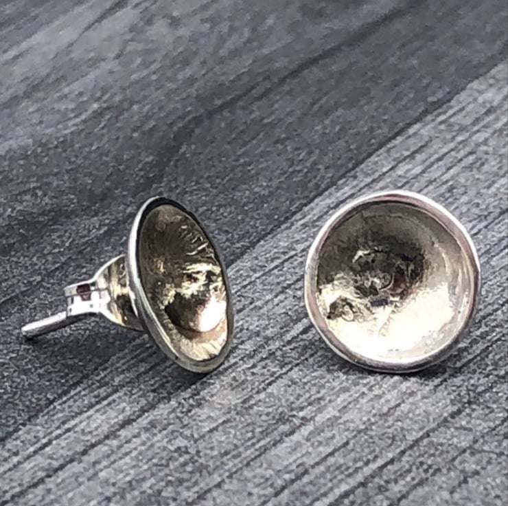 Silver Round Studs, cup shape studs, silver and gold studs, gold smudge studs,