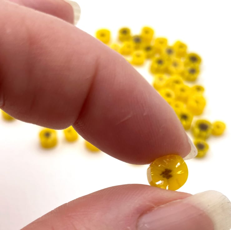 Suflower murrini handmade in the UK using 100% Bullseye glass.