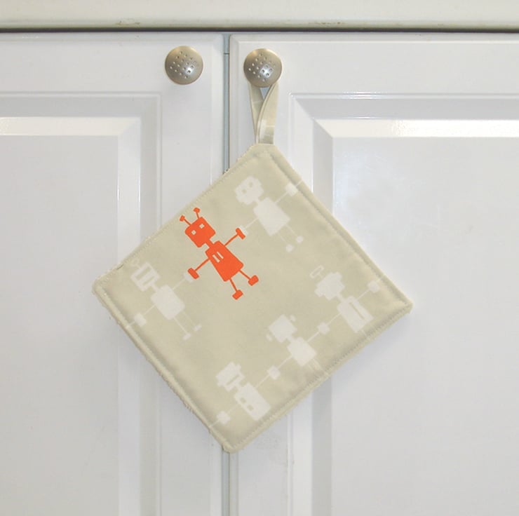 A Pot Holder backed with a cream towel fabric - useful for mopping up around the kitchen,